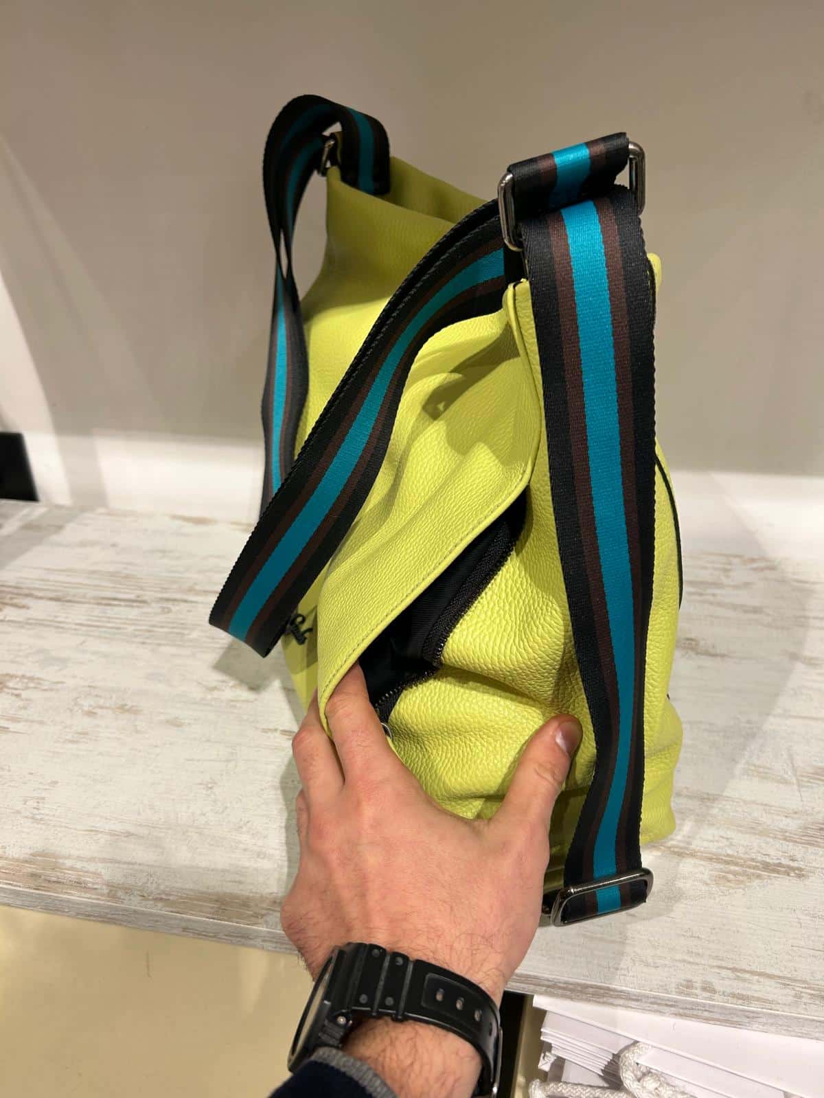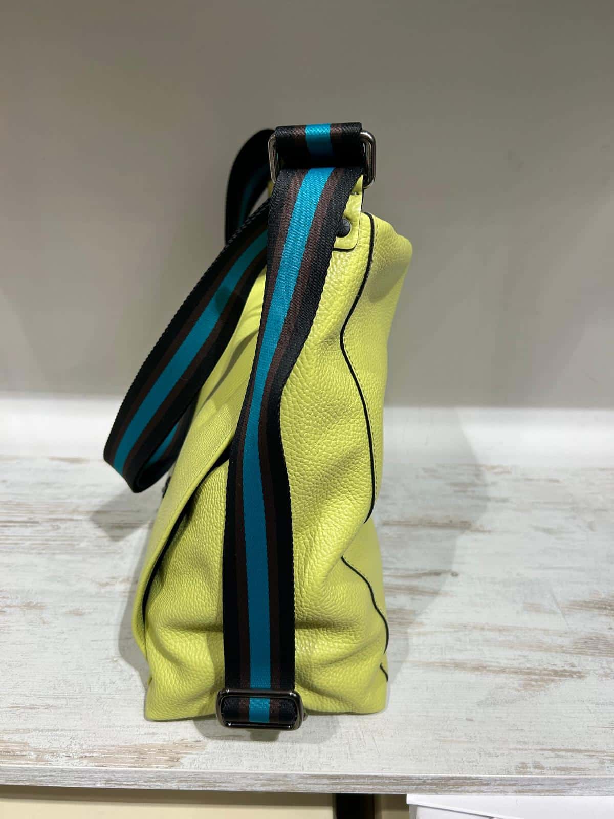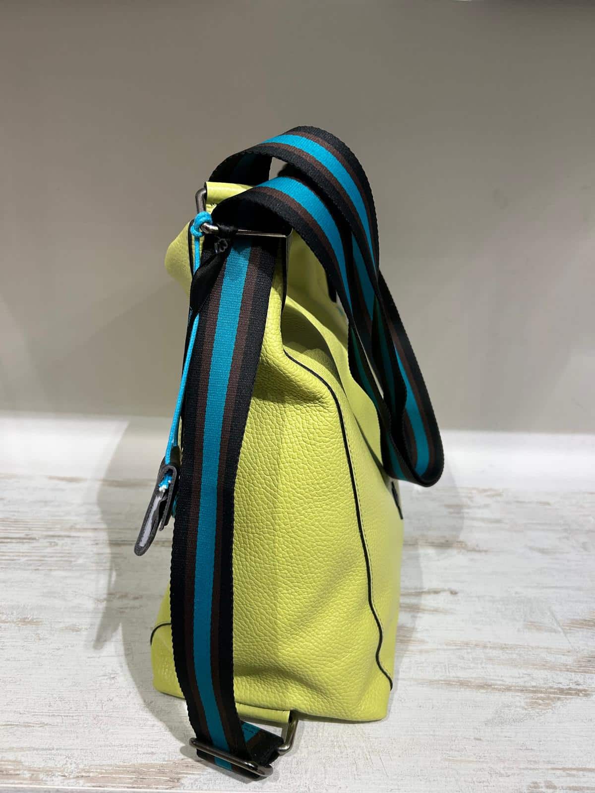 La linea “Icon Black” icona di Gabs è caratterizzata da bottone nero, zip di colore turchese e tracolla a nastro. Con la sua forma spaziosa, questa borsa è ideale per chi cerca un’opzione versatile e alla moda. • Interno Foderato • Tasca interna con chiusura a zip e due tasche porta oggetti • Realizzato in pelle di vitello opaca