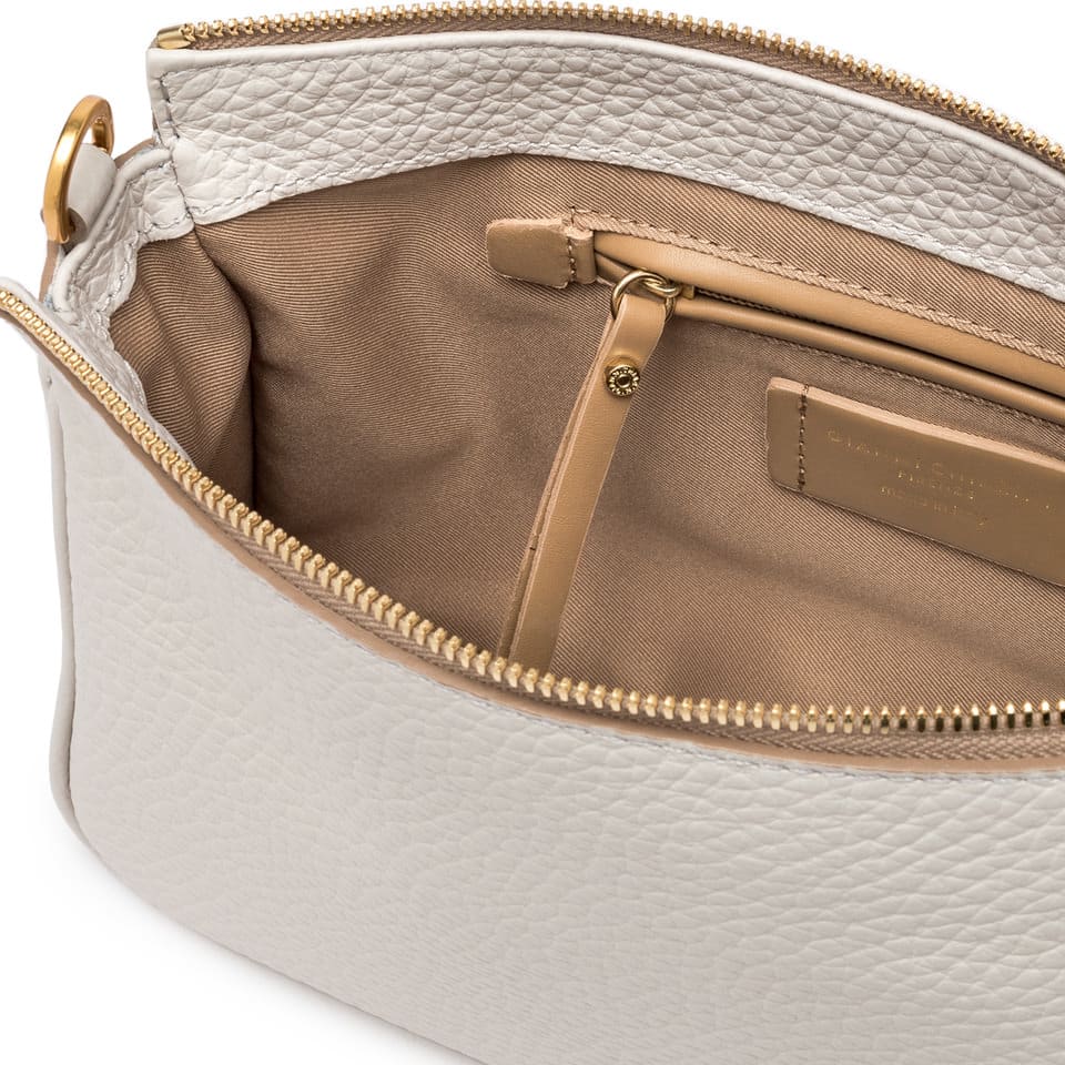 Semplice ed elegante la borsa Brooke by Gianni Chiarini Firenze è realizzata in pelle grana maxi. Arricchita dalla chiusura a zip e dal dettaglio del moschettone del manico removibile. Dotata di una tracolla extra che la rende adatta ad un utilizzo daily.