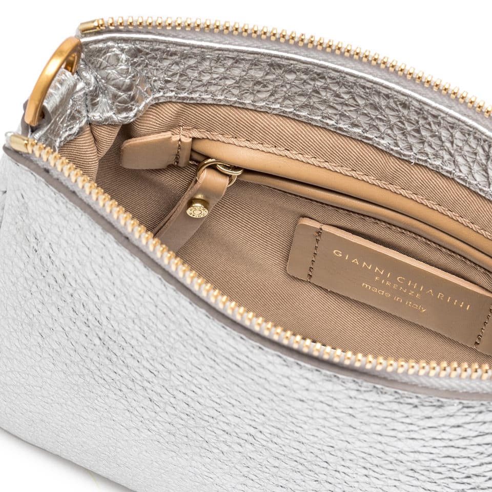 Piccola ed elegante la borsa Brooke by Gianni Chiarini Firenze è realizzata in pregiata pelle grana maxi. Arricchita dalla chiusura a zip e dal dettaglio del moschettone del manico removibile. Dotata di una tracolla extra che la rende adatta ad un utilizzo daily.
