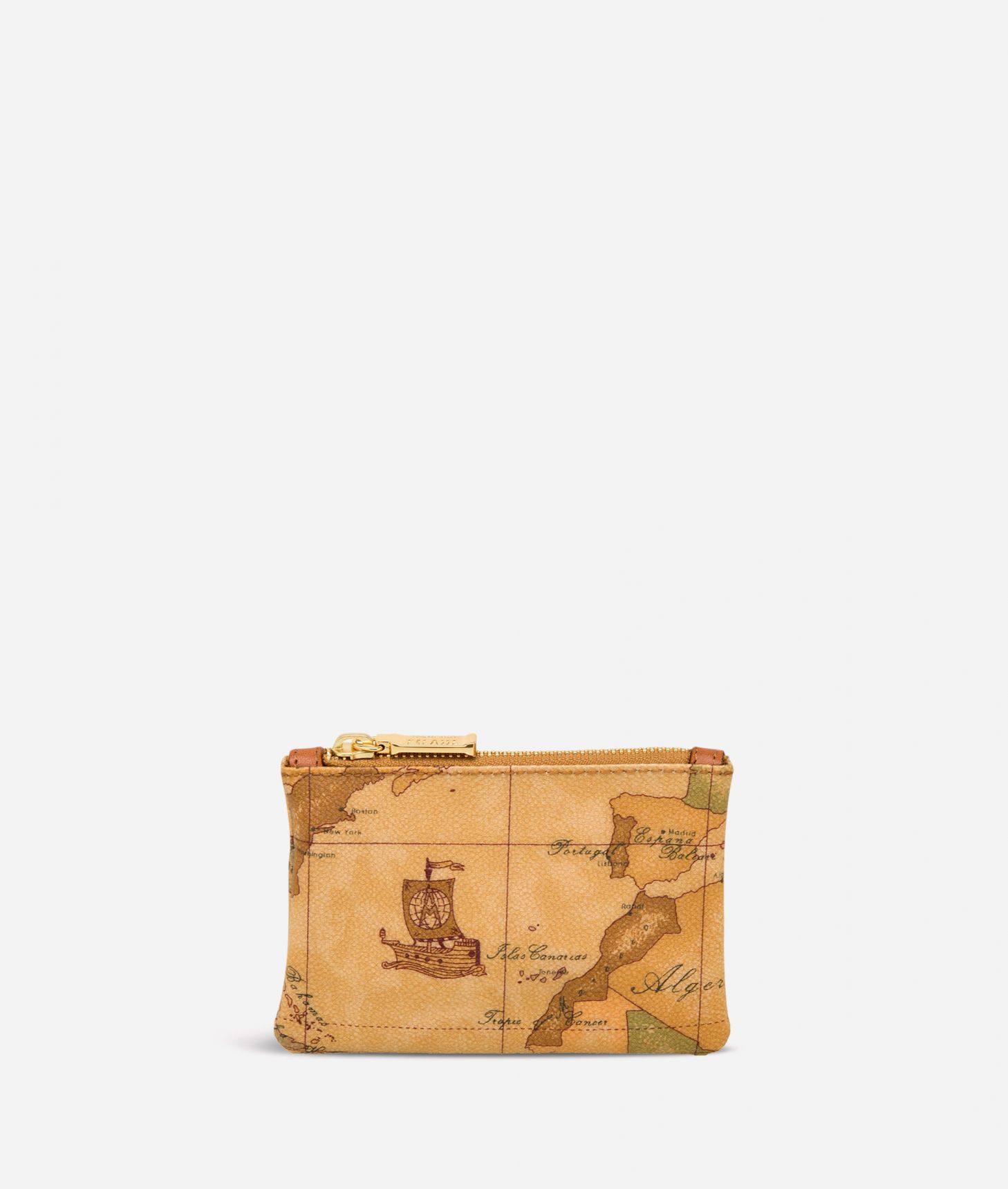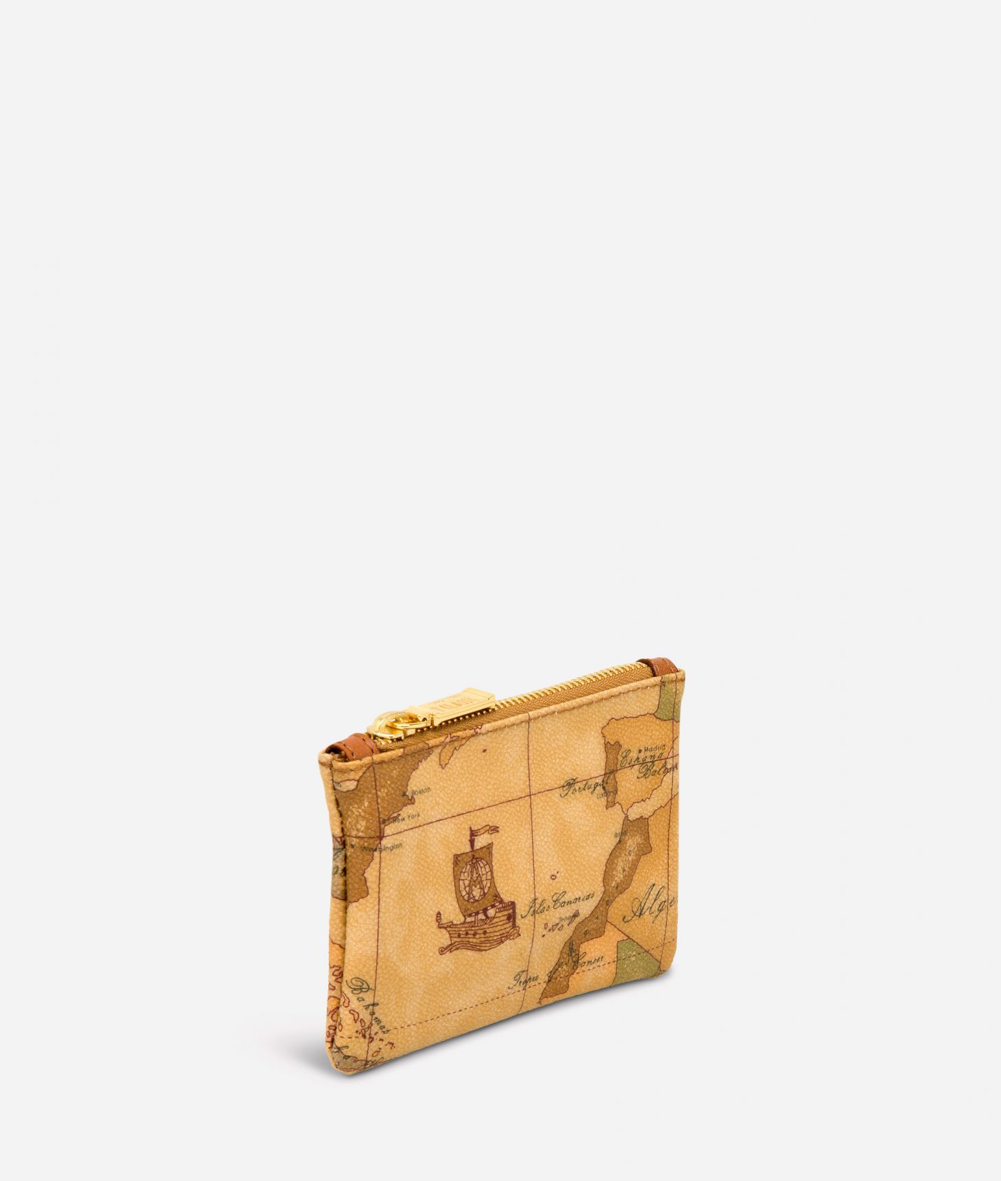 Pochette in tessuto stampato con cartina geografica Geo Classic piatta, di forma rettangolare, chiusa con zip. Impreziosita dai dettagli in metallo dorato, è perfetta come trousse per cosmetici da tenere in borsa e da portare sempre con sé.