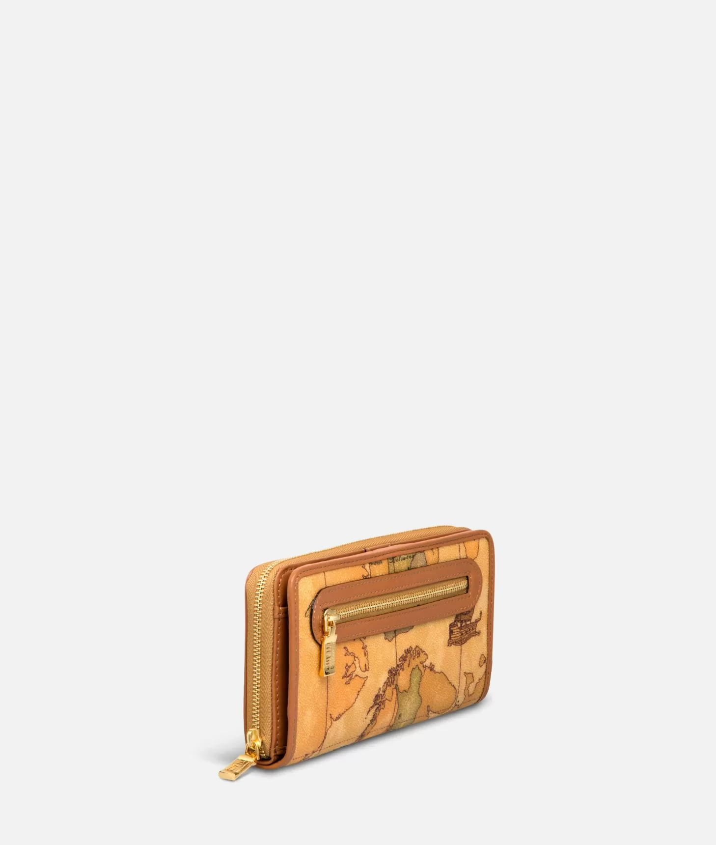 Portafogli donna in tessuto stampato con cartina geografica Geo Classic con tasca esterna chiusa con zip, tasca zip around per banconote e carte di credito, numerosi scomparti interni, chiusura con bottone a pressione e zip around. Di dimensioni grandi, conterrĂ tutti i tuoi averi con un tocco di stile inimitabile.