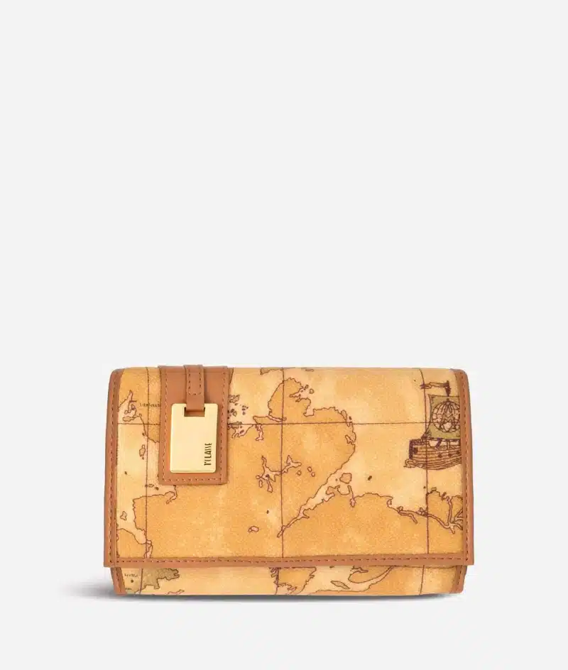 Portafogli donna in tessuto stampato con cartina geografica Geo Classic, con targhetta in metallo dorato con logo 1AClasse, tasca esterna con zip, numerosi comparti interni. Di grandi dimensioni, conterrĂ con stile tutto il necessario per le tue giornate all’insegna dello shopping.