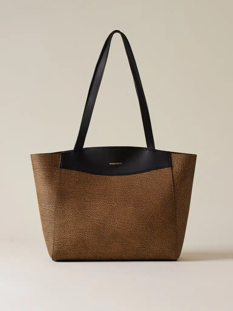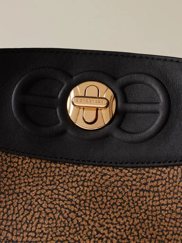 BORSA A SPALLA DI TELA RIVESTITA OP E PELLE
