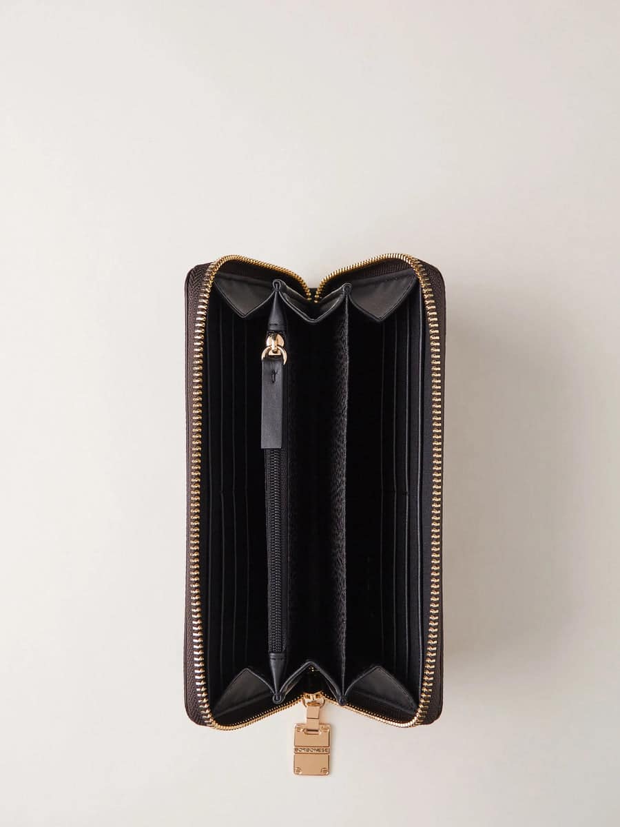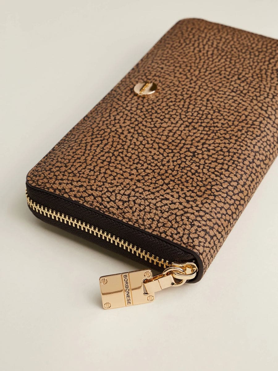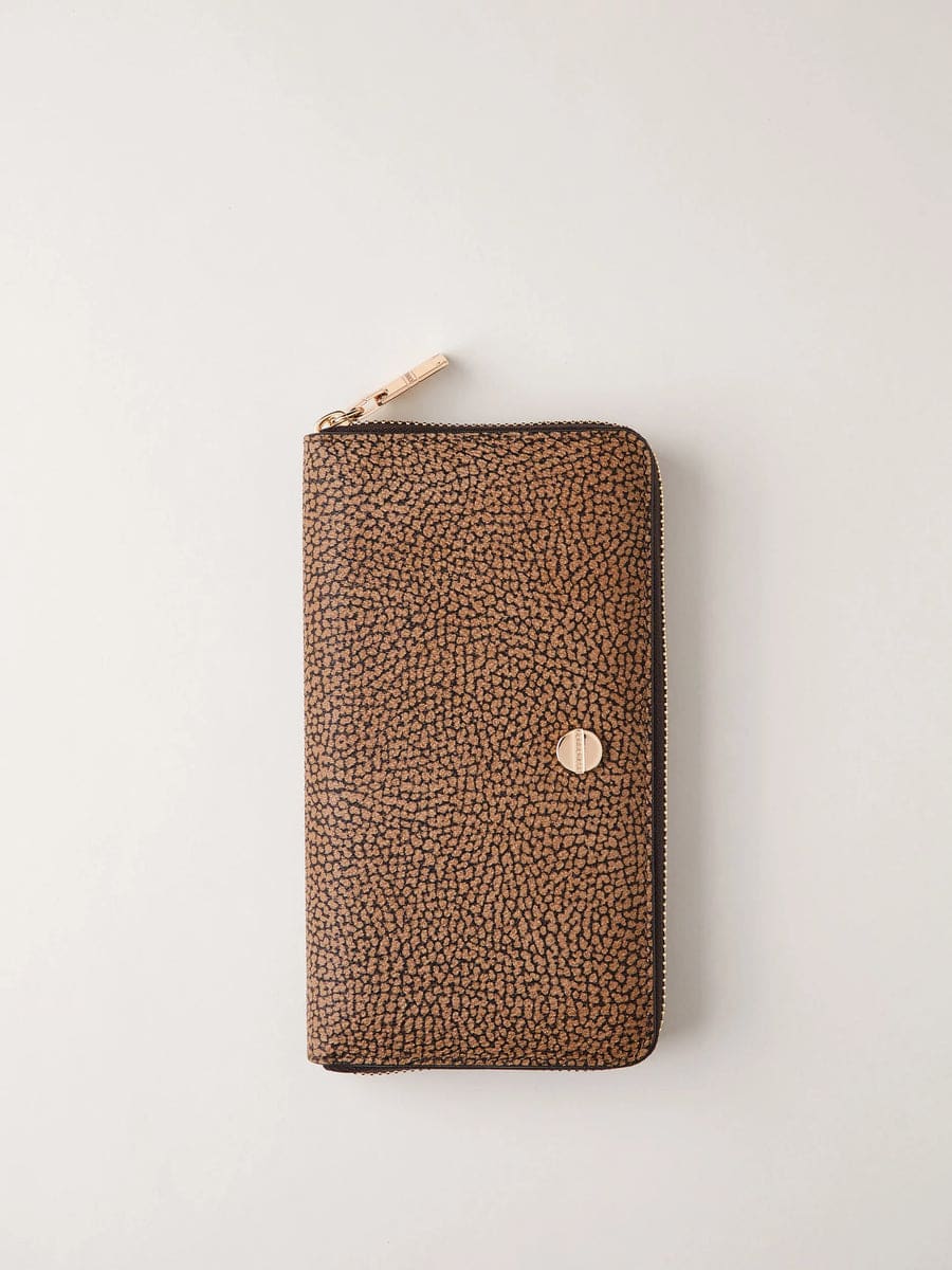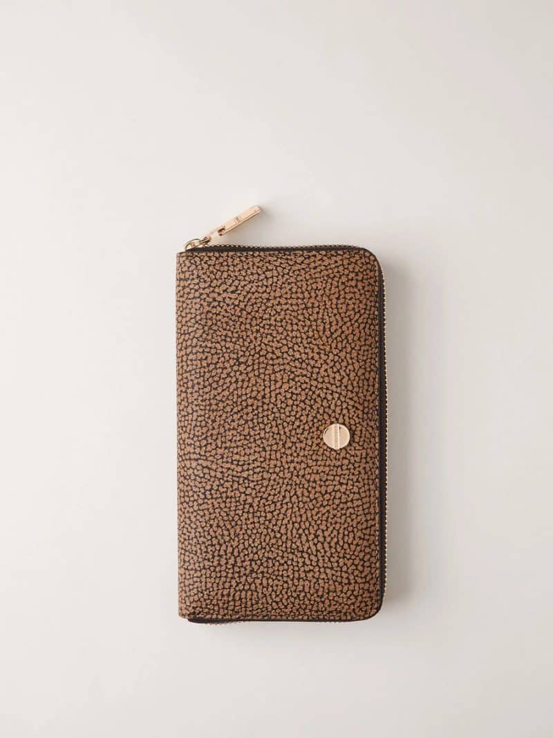 ZIP AROUND DI TELA RIVESTITA OP E PELLE