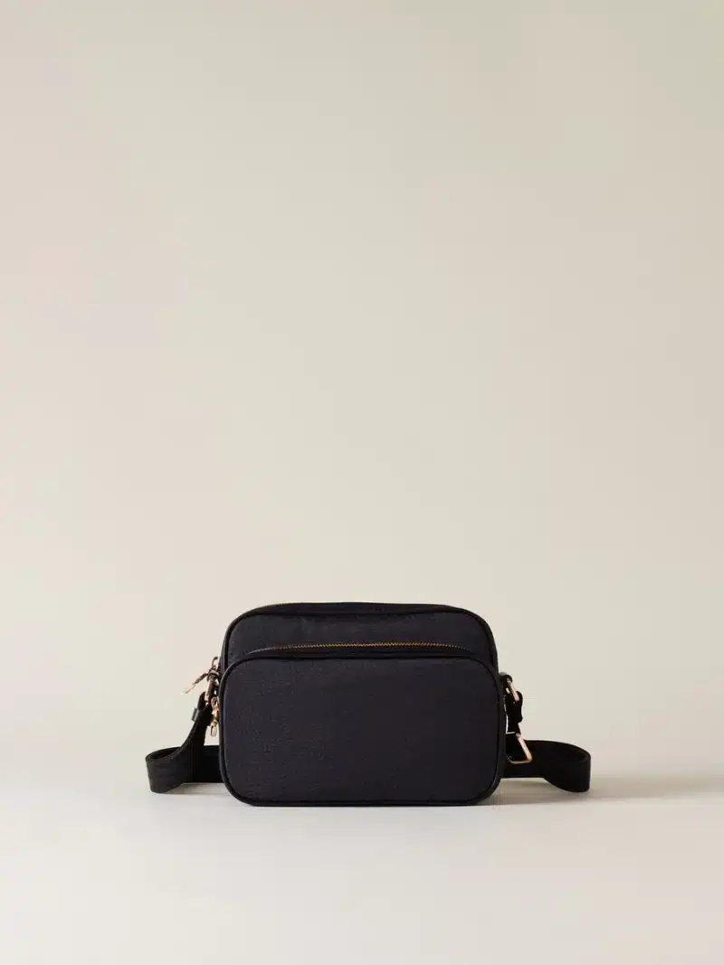 Portrait è una linea che trova nel segno grafico la sua cifra. La camera case Small di nylon OP riciclato è impreziosita da piping di pelle. La tracolla regolabile è realizzata con nastro di nylon logato jacquard. La chiusura è con zip, come la tasca esterna. Interno foderato. Le metallerie sono in galvanica oro chiaro.