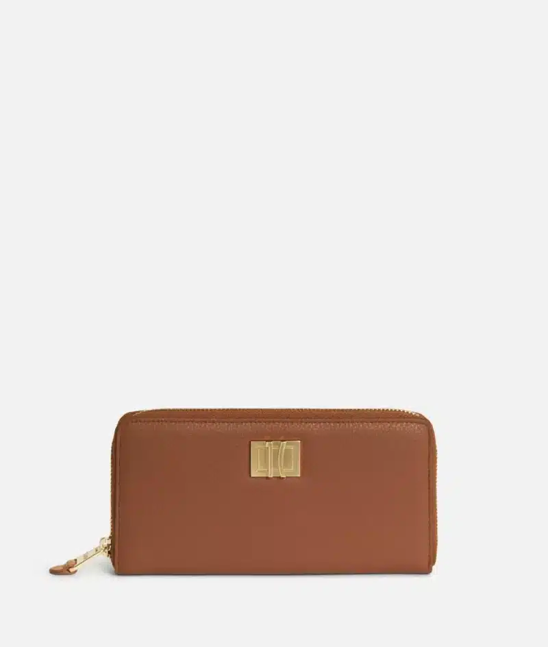 Vera portafoglio zip around in pelle granata Castagna